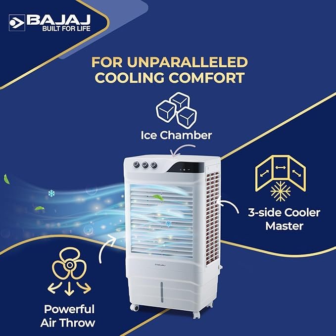 - Large 65-litre water tank for long hours of uninterrupted cooling.