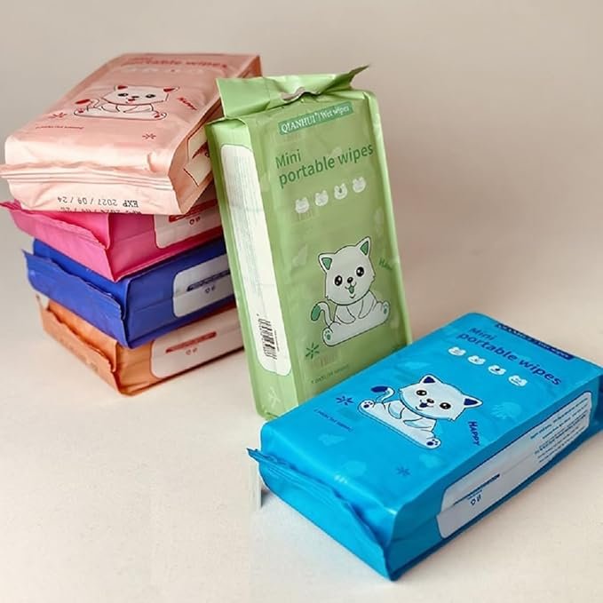 • Package Includes: Disposable Mini Baby Wipes (Cat Design).